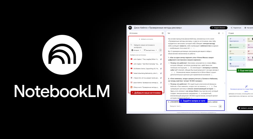 - Создайте блокнот в NotebookLM (или скачайте мои)